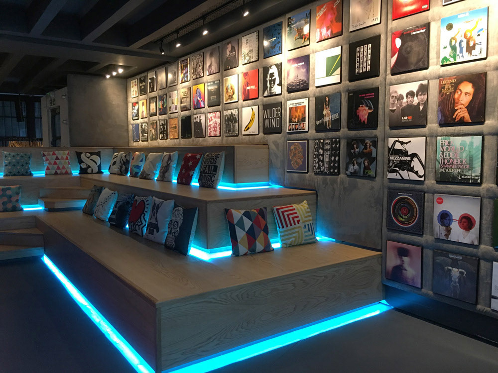 Designed the music venue's visual identity and interior decoration, creating an immersive space that reflected the brand's personality. This connected with press, journalists and the pubic during live bands, listening demos and product launches.